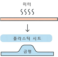 기본 원리 플라스틱 시트 가열 : ABS, PET, PVC, PS, PP 등 열가소성 시트를 가열해 부드럽게 만듭니다. 금형 위로 밀착 : 시트를 금형 위에 덮고, 진공 펌프를 가동해 공기를 빨아내면서 시트를 금형에 흡착시킵니다. 냉각 및 성형 완료 : 성형된 시트를 식히고 금형에서 분리하면 원하는 형상이 완성됩니다.