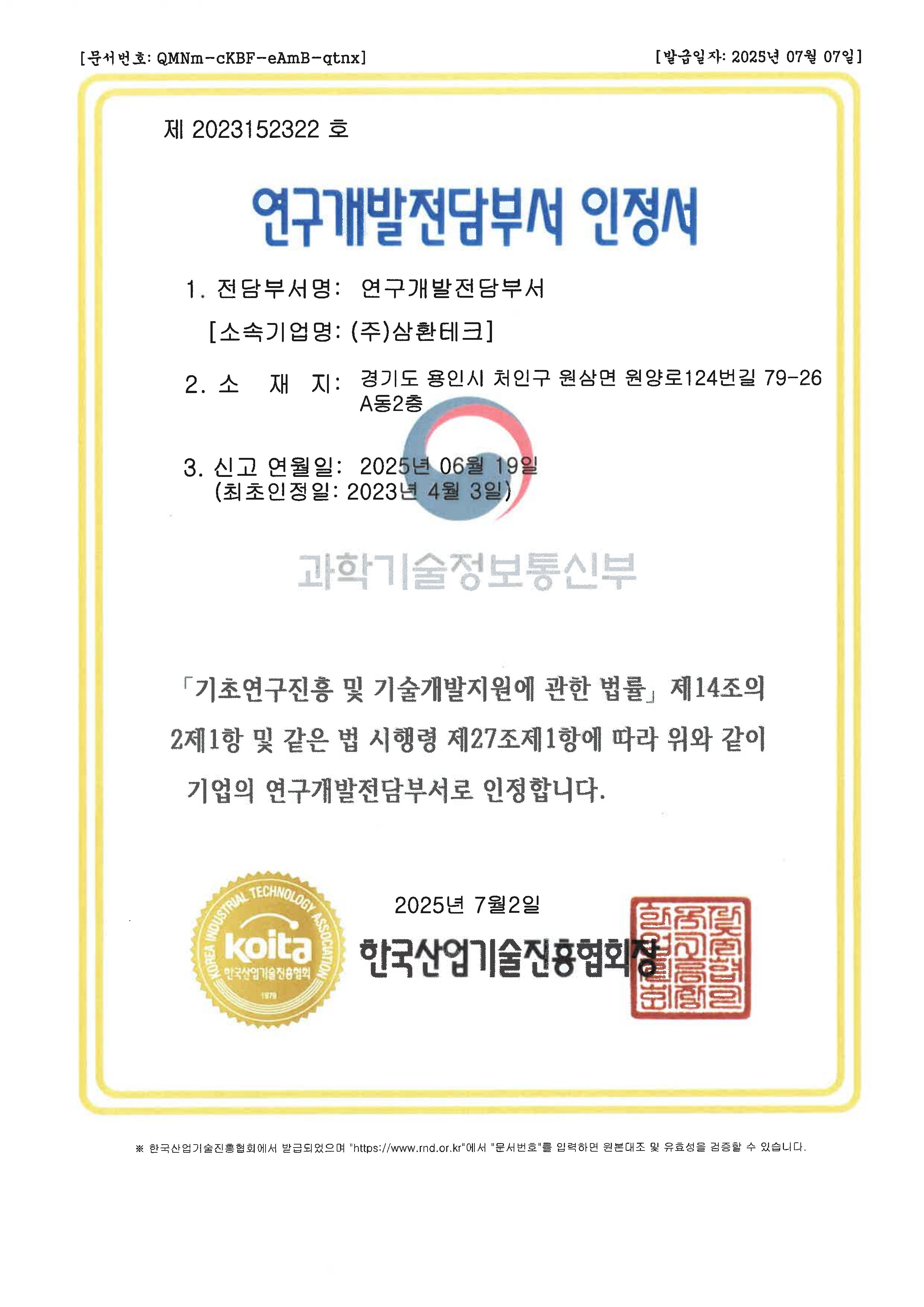 연구개발전담부서인증서2025